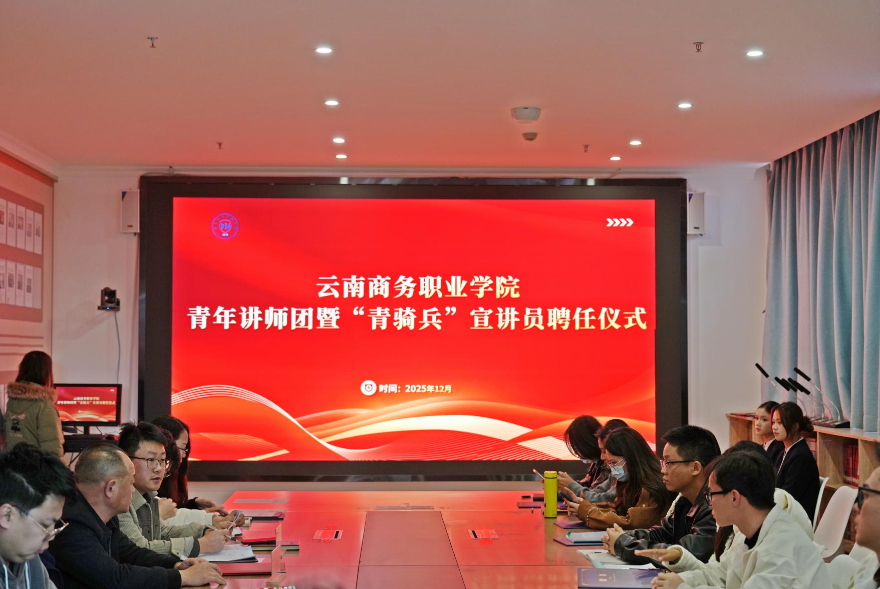 为持续推动党的创新理论在青年群体中深入人心,积极构建具有我校特色的青年思想政治工作体系,12月16日下午,云南商务职业学院青年讲师团暨民族团结“青骑兵”队伍聘任仪式在图书馆党建学堂庄严举行。这标志着一支由优秀青年教师和青年学子共同组成的理论宣讲队伍,自此整装集结,正式扛起传播真理、引领思想的光荣使命。